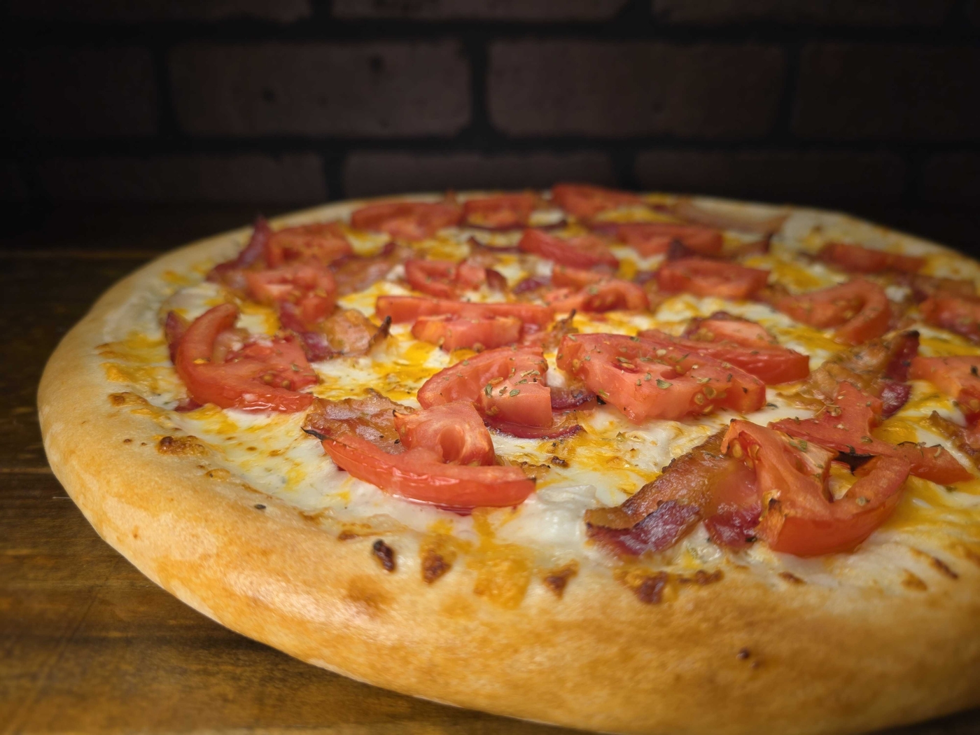 Satisfy your cravings with the mouthwatering Chicken Ranch Pie pizza. This savory treat features our signature Garlic Ranch Sauce spread over the crust and topped with Oven-Roasted Chicken Breast, Bacon, Tomatoes, Onions, and a blend of Sharp Cheddar and Mozzarella Cheese. Each bite is a burst of delicious flavors that will leave you wanting more.